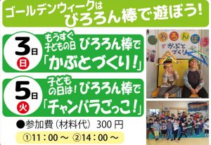 しろいし Sun Park > イベント > もうすぐ子どもの日 びろろん棒で「かぶとづくり!」